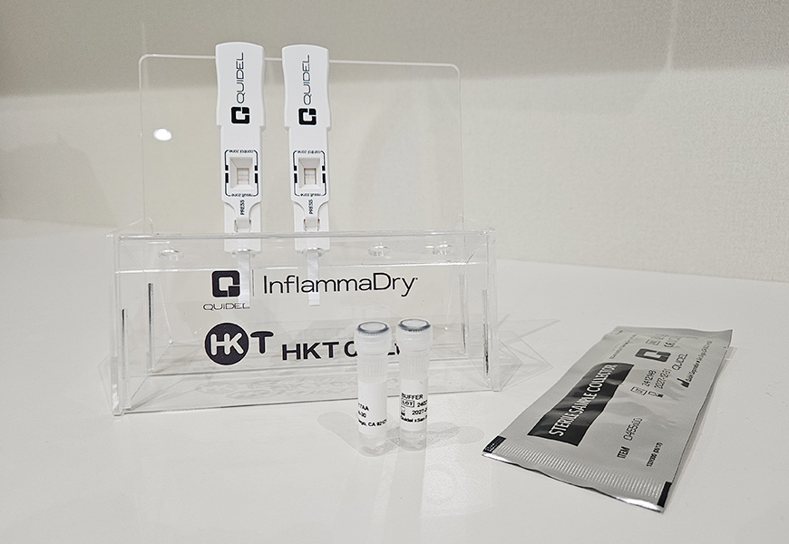 눈물 속에 존재하는 MMP-9(matrix metalloproteinase-9) 이라는 염증성 단백질을 검출합니다. MMP-9은 염증반응이 활발할 때 각막 상피세포와 면역세포에서 많이 분비되며, 안구 표면 손상과 증상 악화에 중요한 역할을 합니다.